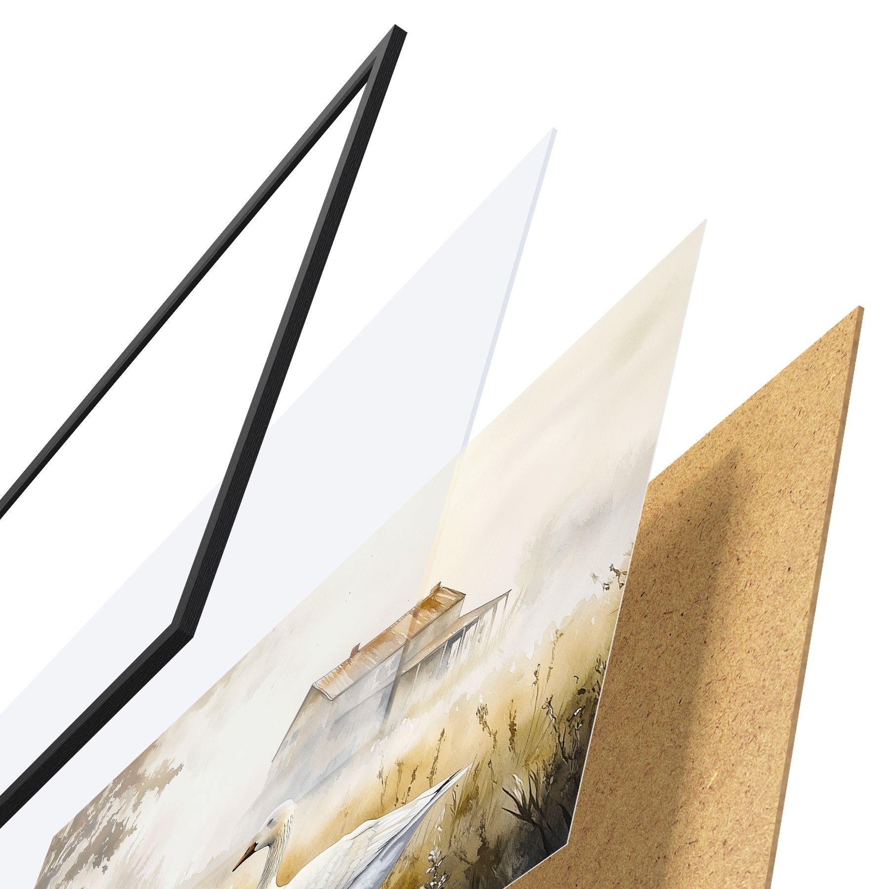 Poster Estilo acuarela gansos en el campo, pueblo, rústico Nr f44024