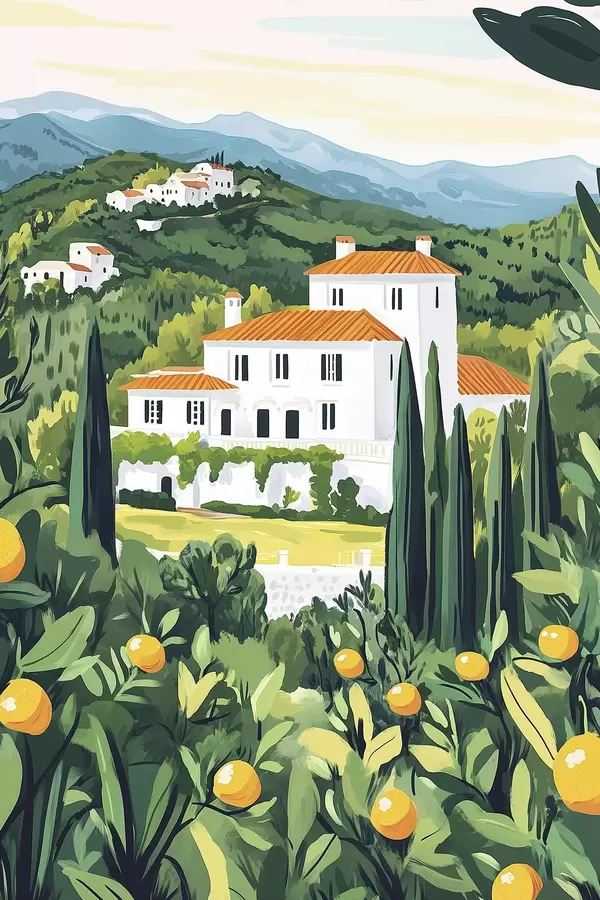 Poster Naturaleza estival, mediterráneo, limoneros, arquitectura f44028