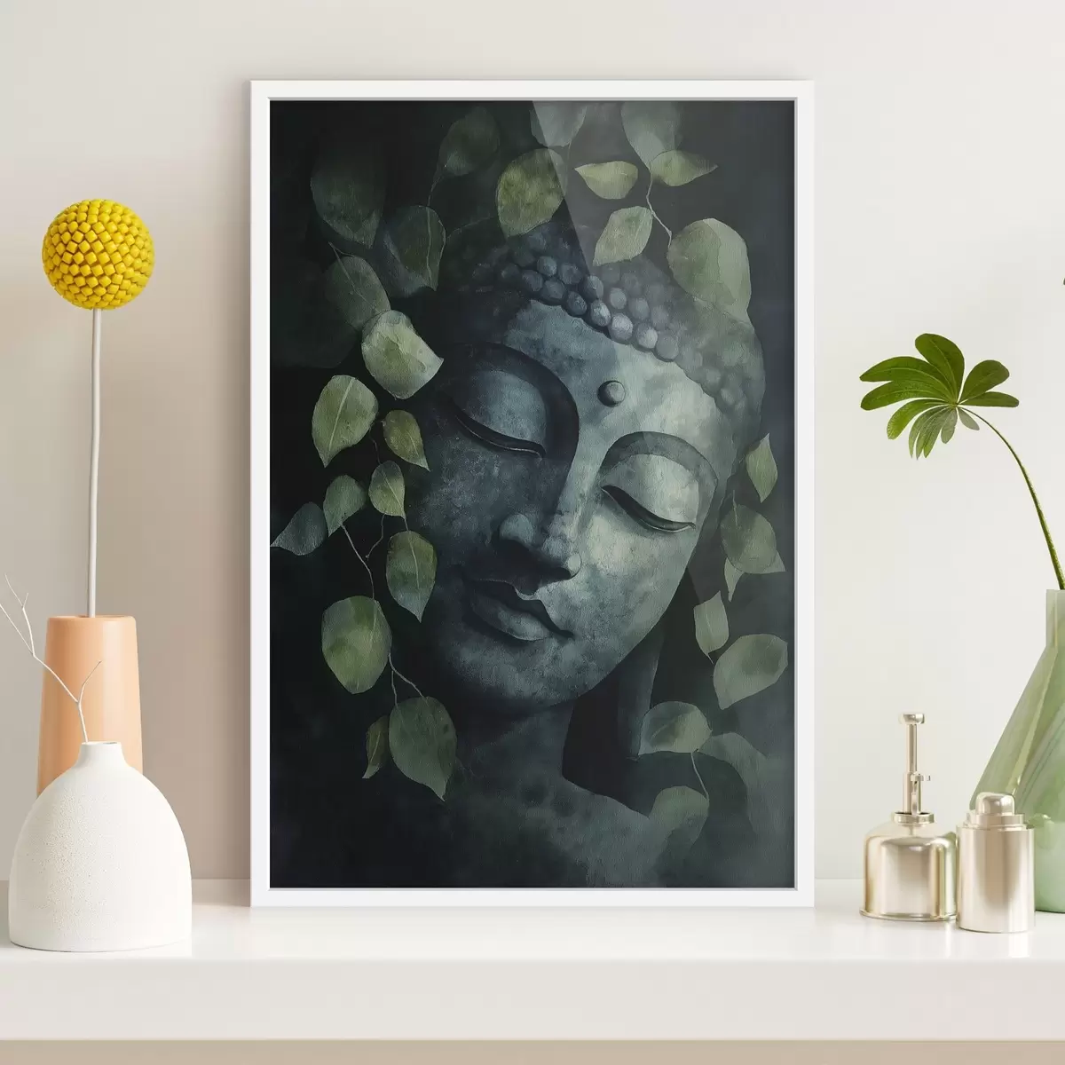 Poster Buda con los ojos cerrados, meditación, colores verdes f44030