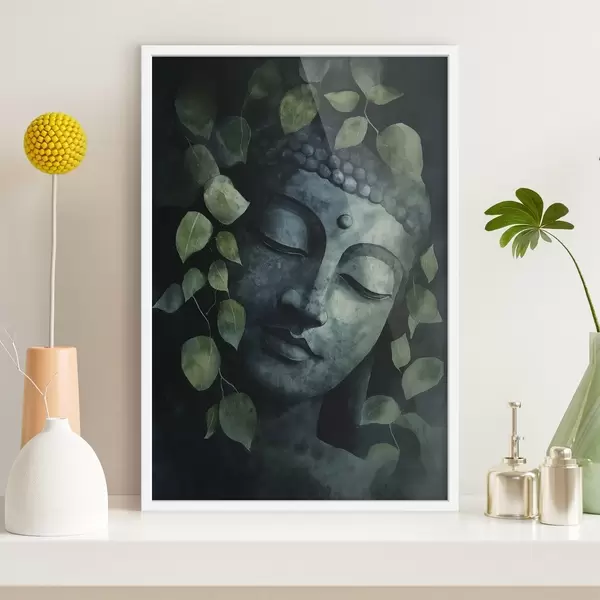 Poster Buda con los ojos cerrados, meditación, colores verdes Nr f44030