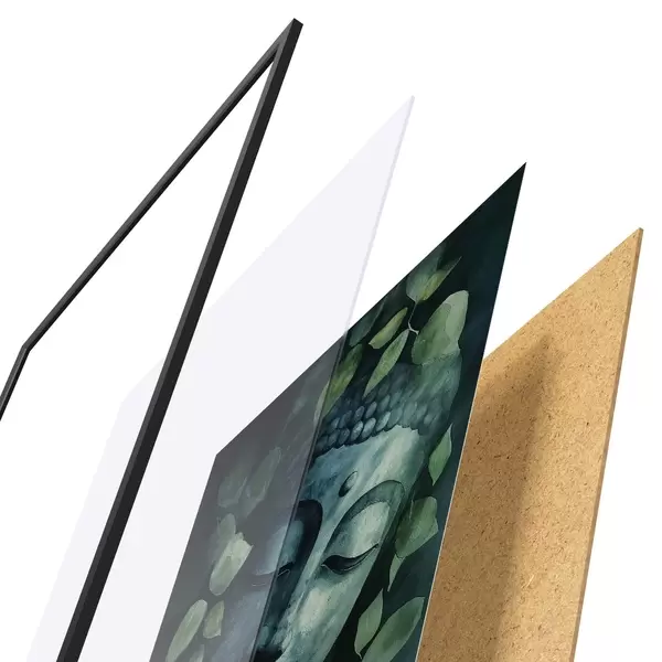 El póster consta de marco, plexiglás, imagen impresa y soporte de aglomerado. El póster puede colgarse inmediatamente en la pared gracias a los soportes de la parte posterior.