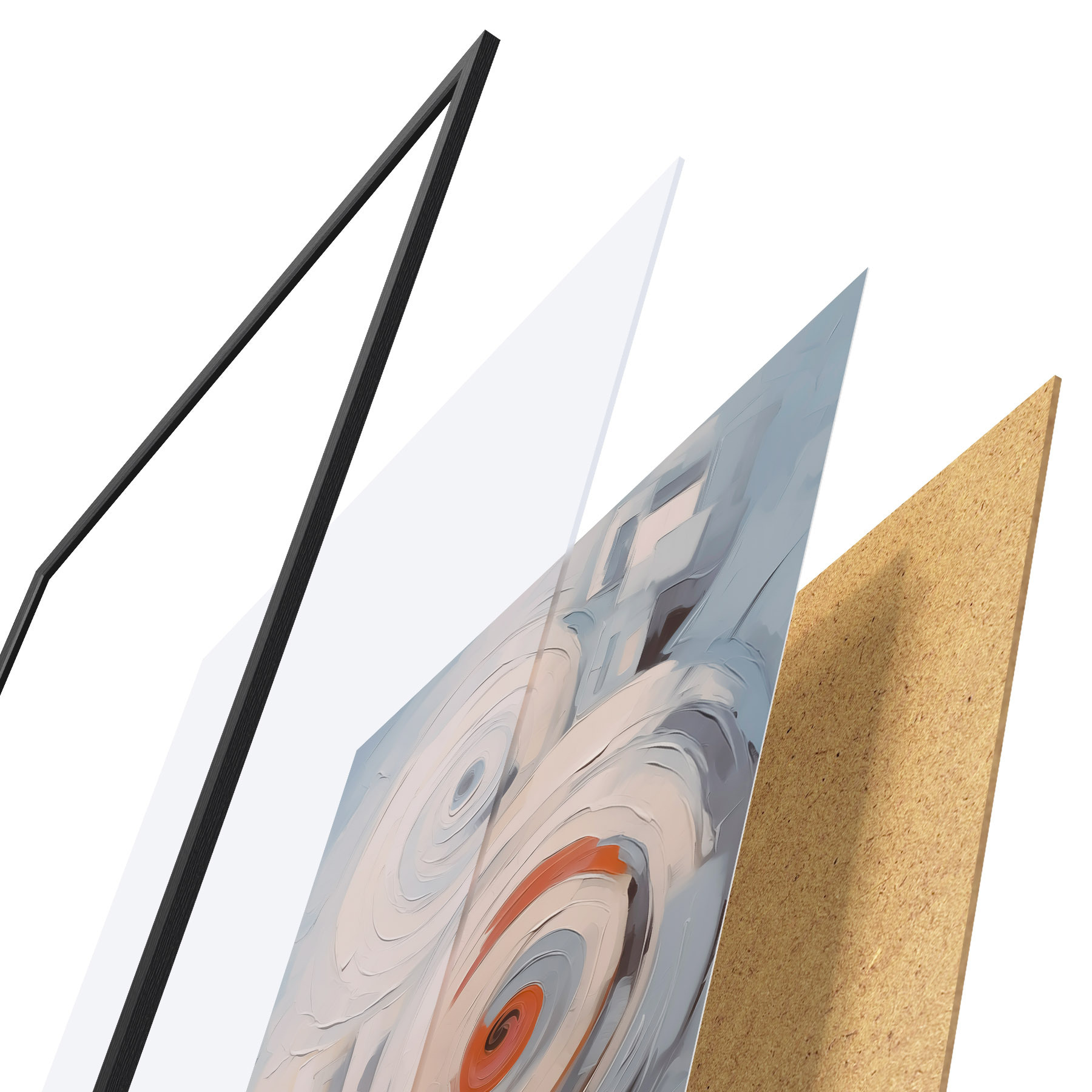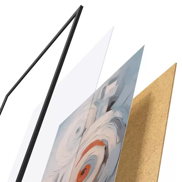 El póster consta de marco, plexiglás, imagen impresa y soporte de aglomerado. El póster puede colgarse inmediatamente en la pared gracias a los soportes de la parte posterior.