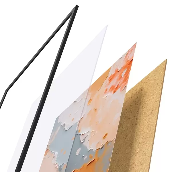 El póster consta de marco, plexiglás, imagen impresa y soporte de aglomerado. El póster puede colgarse inmediatamente en la pared gracias a los soportes de la parte posterior.