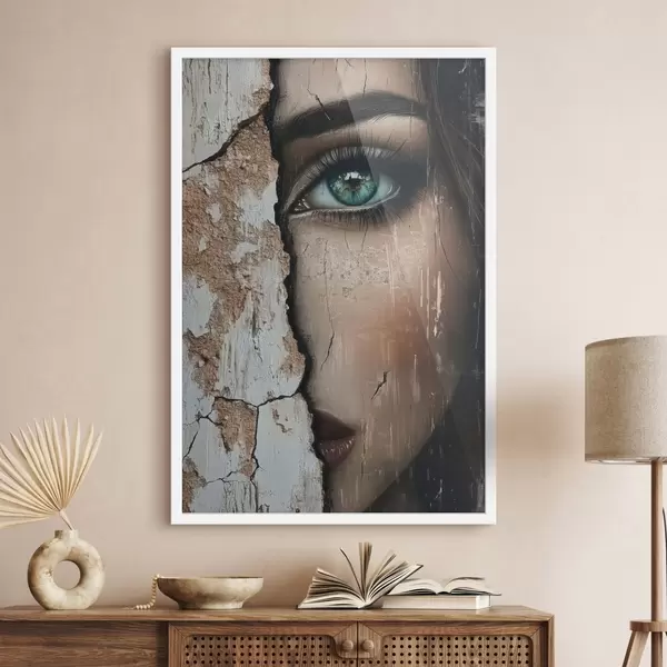 Poster Cara de niña detrás de un viejo muro Nr f44069