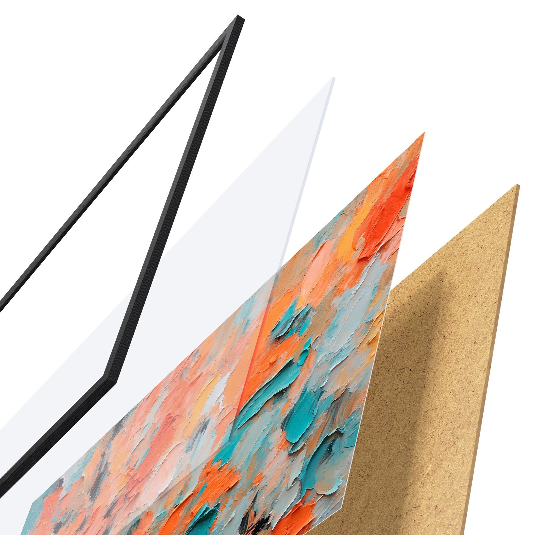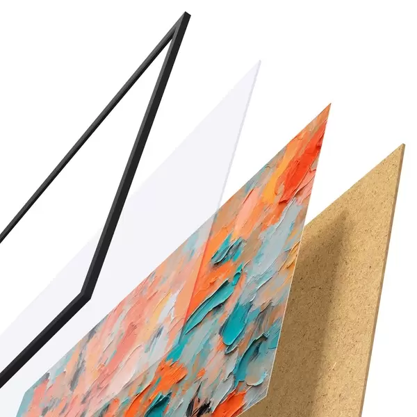 El póster consta de marco, plexiglás, imagen impresa y soporte de aglomerado. El póster puede colgarse inmediatamente en la pared gracias a los soportes de la parte posterior.