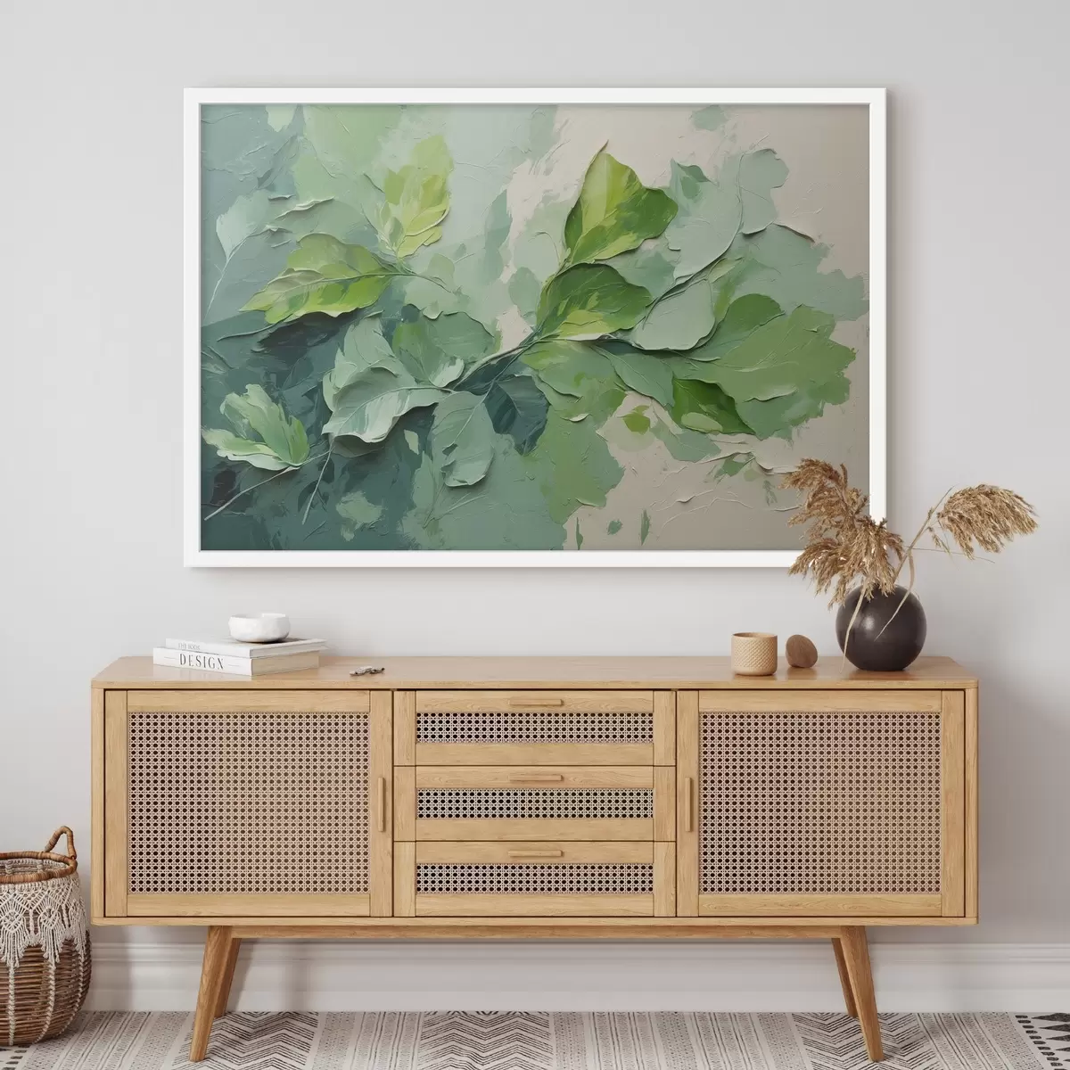 Poster Rama con hojas verdes al óleo f44075