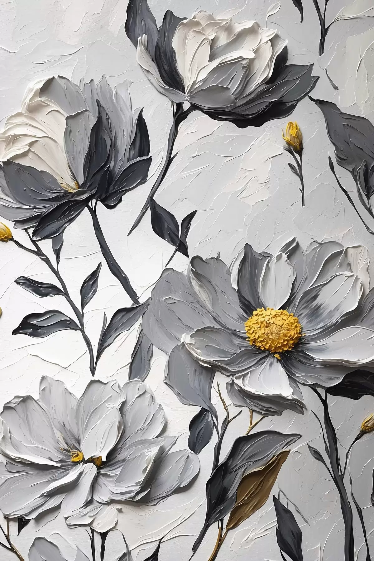 Poster Flores grises sobre fondo gris al óleo Nr f44080