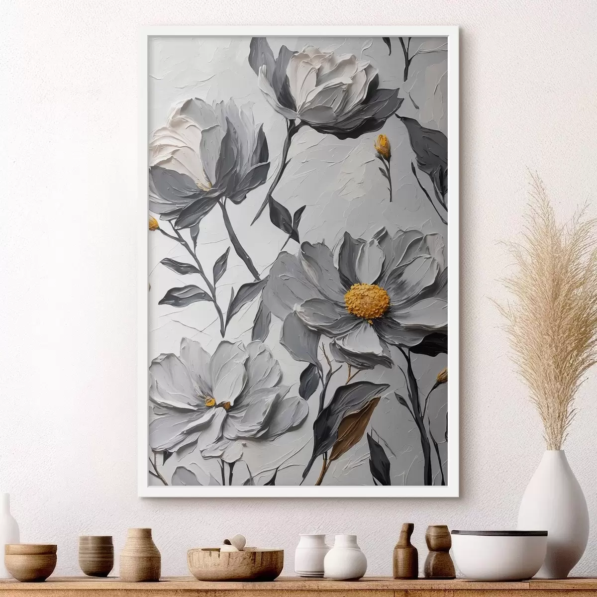 Poster Flores grises sobre fondo gris al óleo f44080