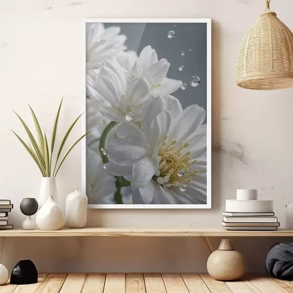 Poster Flores blancas con rocío Nr f44100