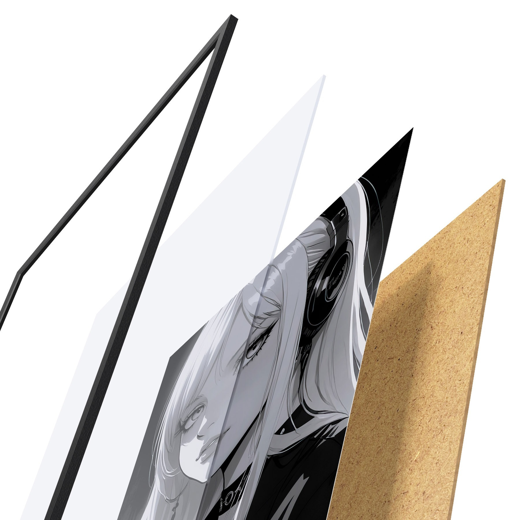 El póster consta de marco, plexiglás, imagen impresa y soporte de aglomerado. El póster puede colgarse inmediatamente en la pared gracias a los soportes de la parte posterior.