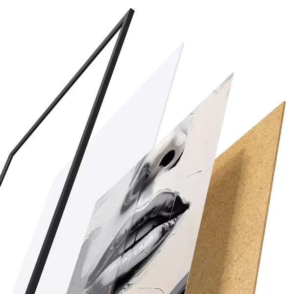 El póster consta de marco, plexiglás, imagen impresa y soporte de aglomerado. El póster puede colgarse inmediatamente en la pared gracias a los soportes de la parte posterior.