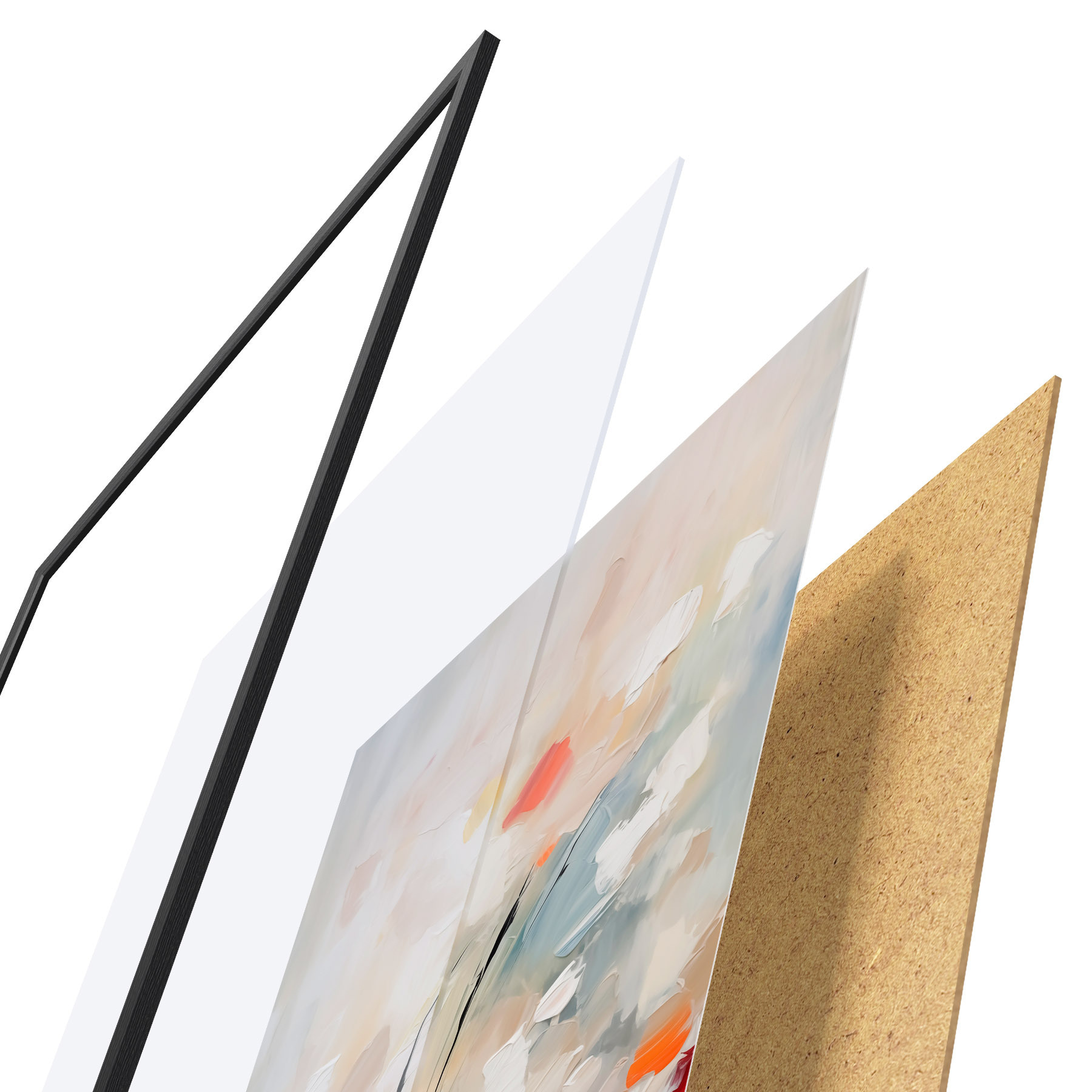El póster consta de marco, plexiglás, imagen impresa y soporte de aglomerado. El póster puede colgarse inmediatamente en la pared gracias a los soportes de la parte posterior.
