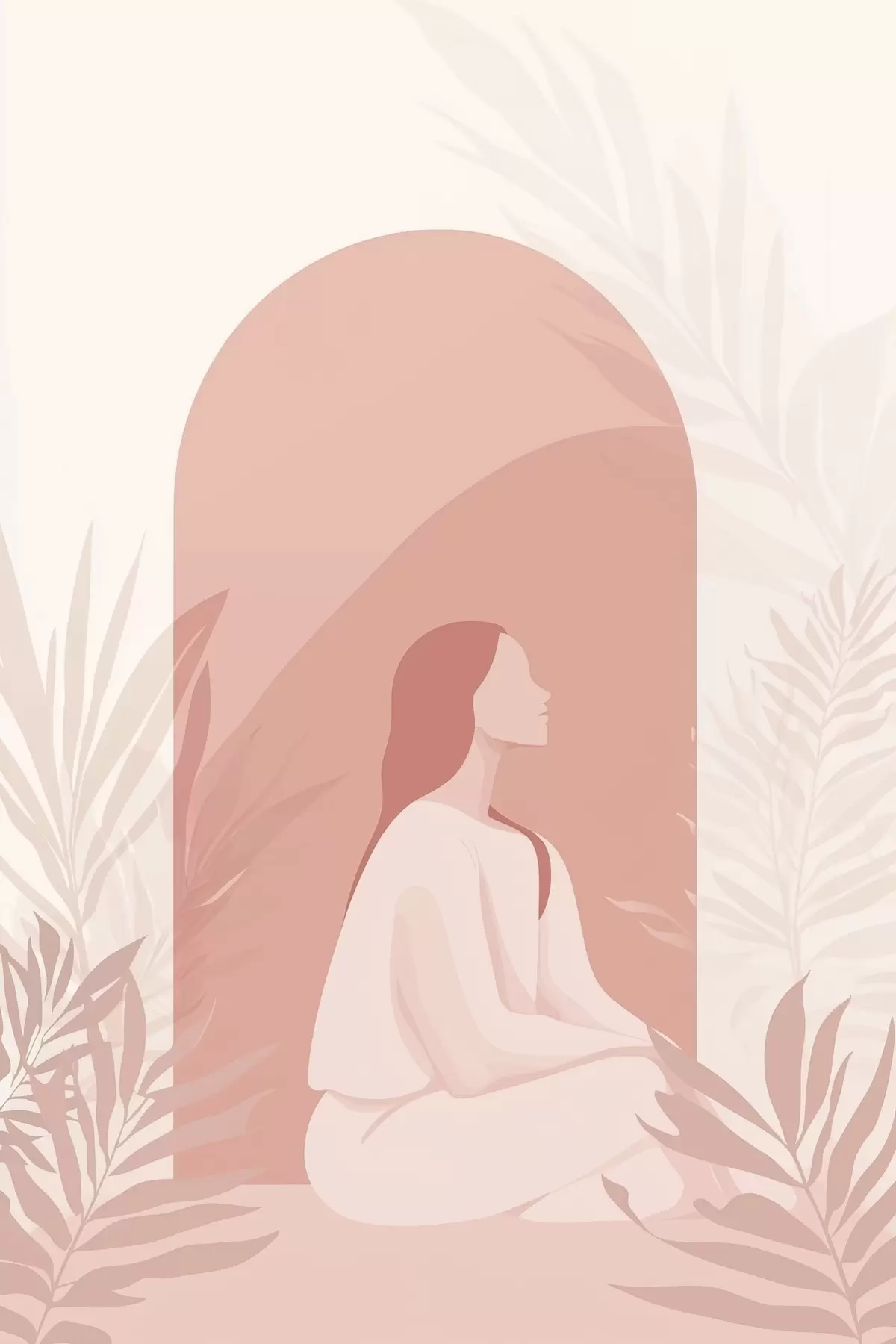 Poster Mujer en meditación, estilo plano, plantas tropicales, colores rosas Nr f44154