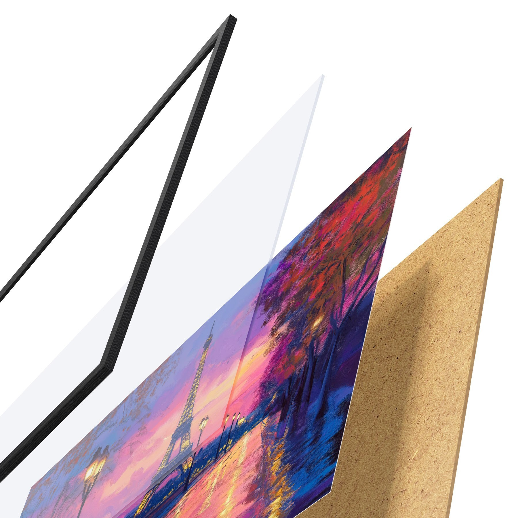 El póster consta de marco, plexiglás, imagen impresa y soporte de aglomerado. El póster puede colgarse inmediatamente en la pared gracias a los soportes de la parte posterior.