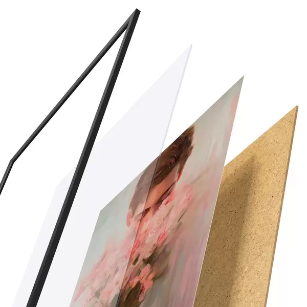 El póster consta de marco, plexiglás, imagen impresa y soporte de aglomerado. El póster puede colgarse inmediatamente en la pared gracias a los soportes de la parte posterior.