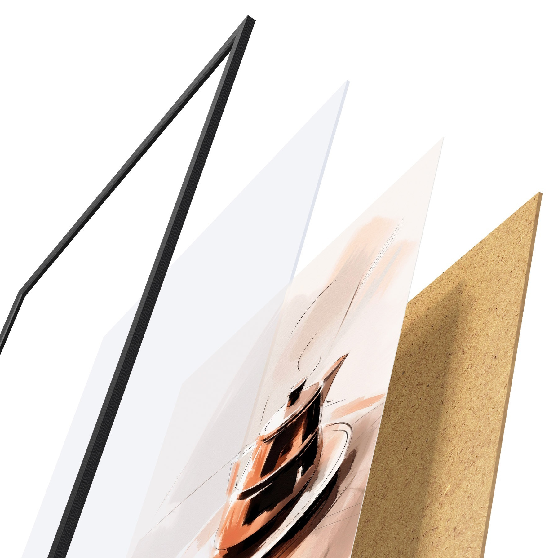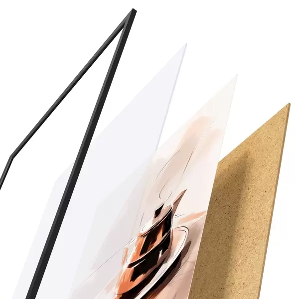 El póster consta de marco, plexiglás, imagen impresa y soporte de aglomerado. El póster puede colgarse inmediatamente en la pared gracias a los soportes de la parte posterior.