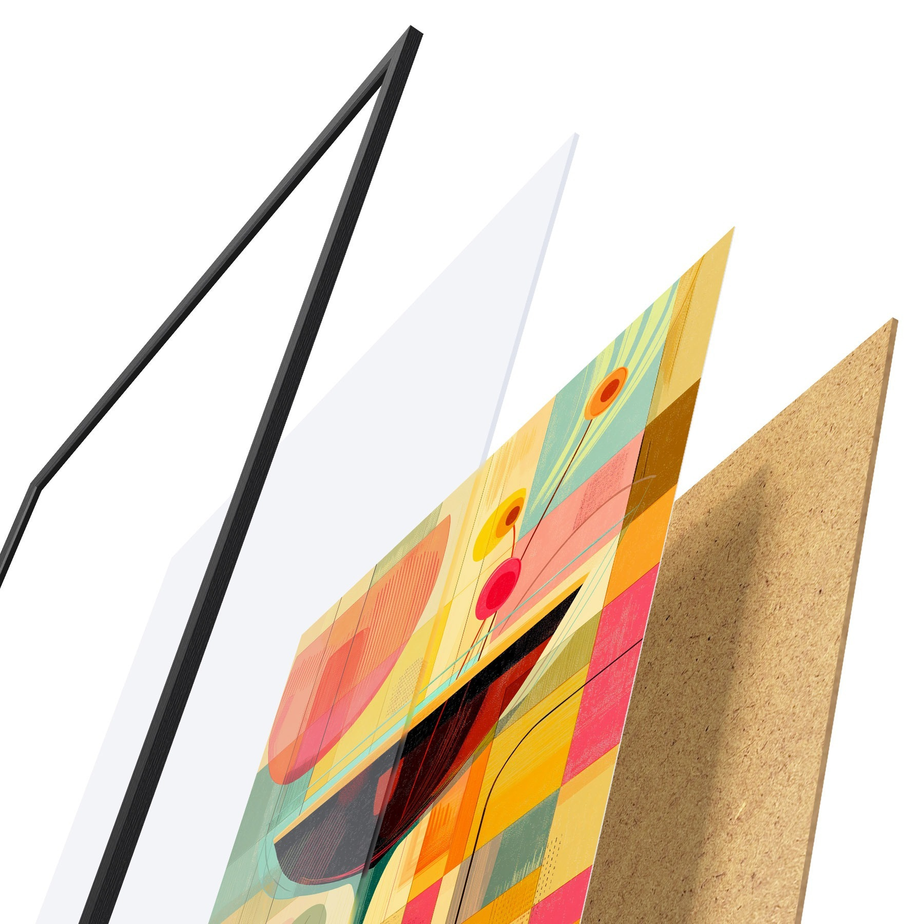 El póster consta de marco, plexiglás, imagen impresa y soporte de aglomerado. El póster puede colgarse inmediatamente en la pared gracias a los soportes de la parte posterior.