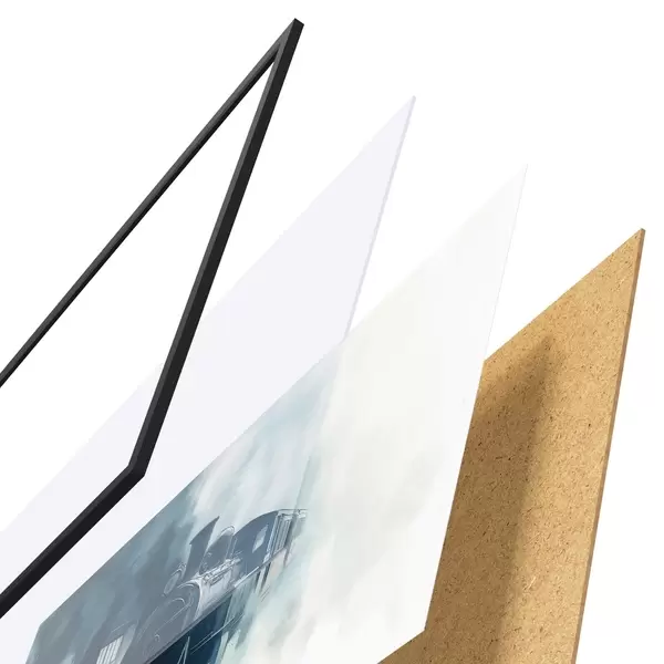 El póster consta de marco, plexiglás, imagen impresa y soporte de aglomerado. El póster puede colgarse inmediatamente en la pared gracias a los soportes de la parte posterior.