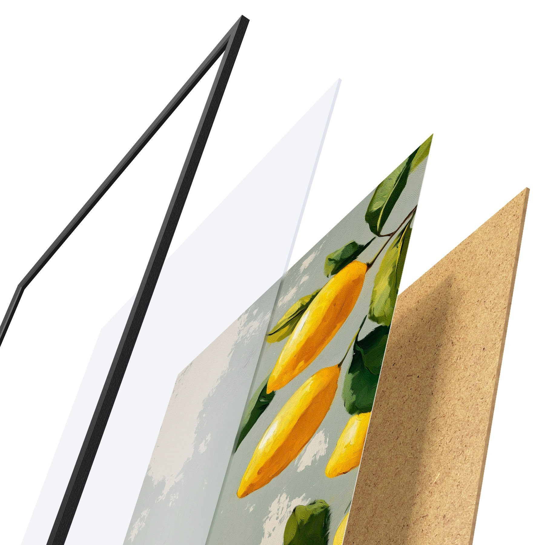 El póster consta de marco, plexiglás, imagen impresa y soporte de aglomerado. El póster puede colgarse inmediatamente en la pared gracias a los soportes de la parte posterior.