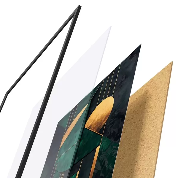 El póster consta de marco, plexiglás, imagen impresa y soporte de aglomerado. El póster puede colgarse inmediatamente en la pared gracias a los soportes de la parte posterior.