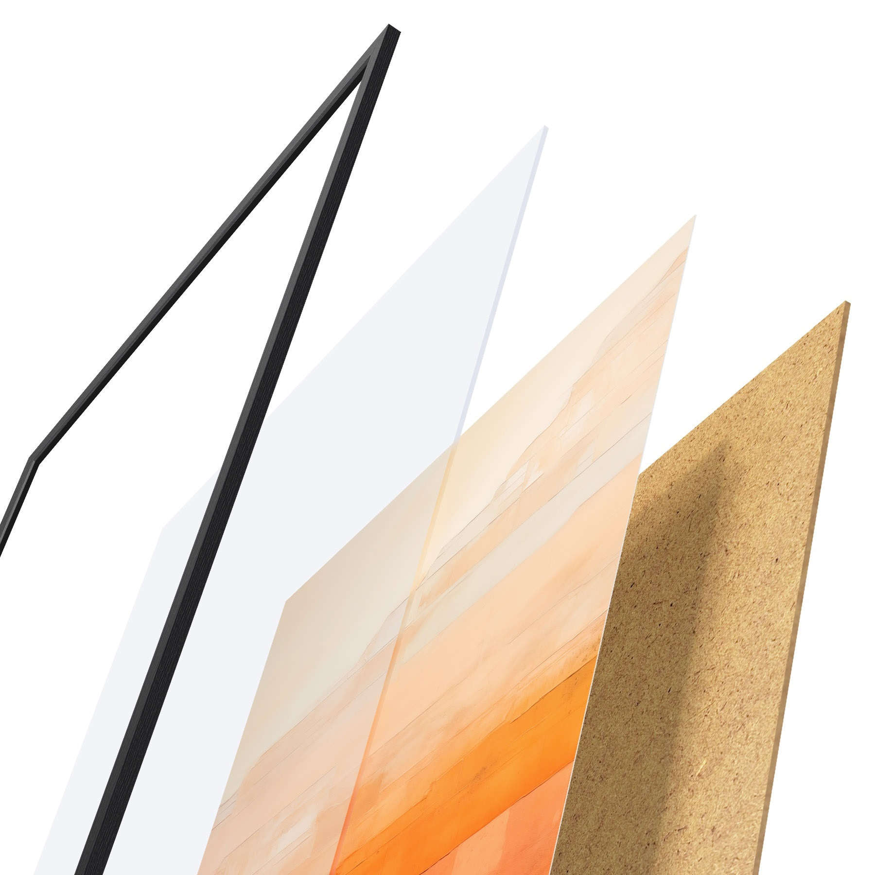 El póster consta de marco, plexiglás, imagen impresa y soporte de aglomerado. El póster puede colgarse inmediatamente en la pared gracias a los soportes de la parte posterior.