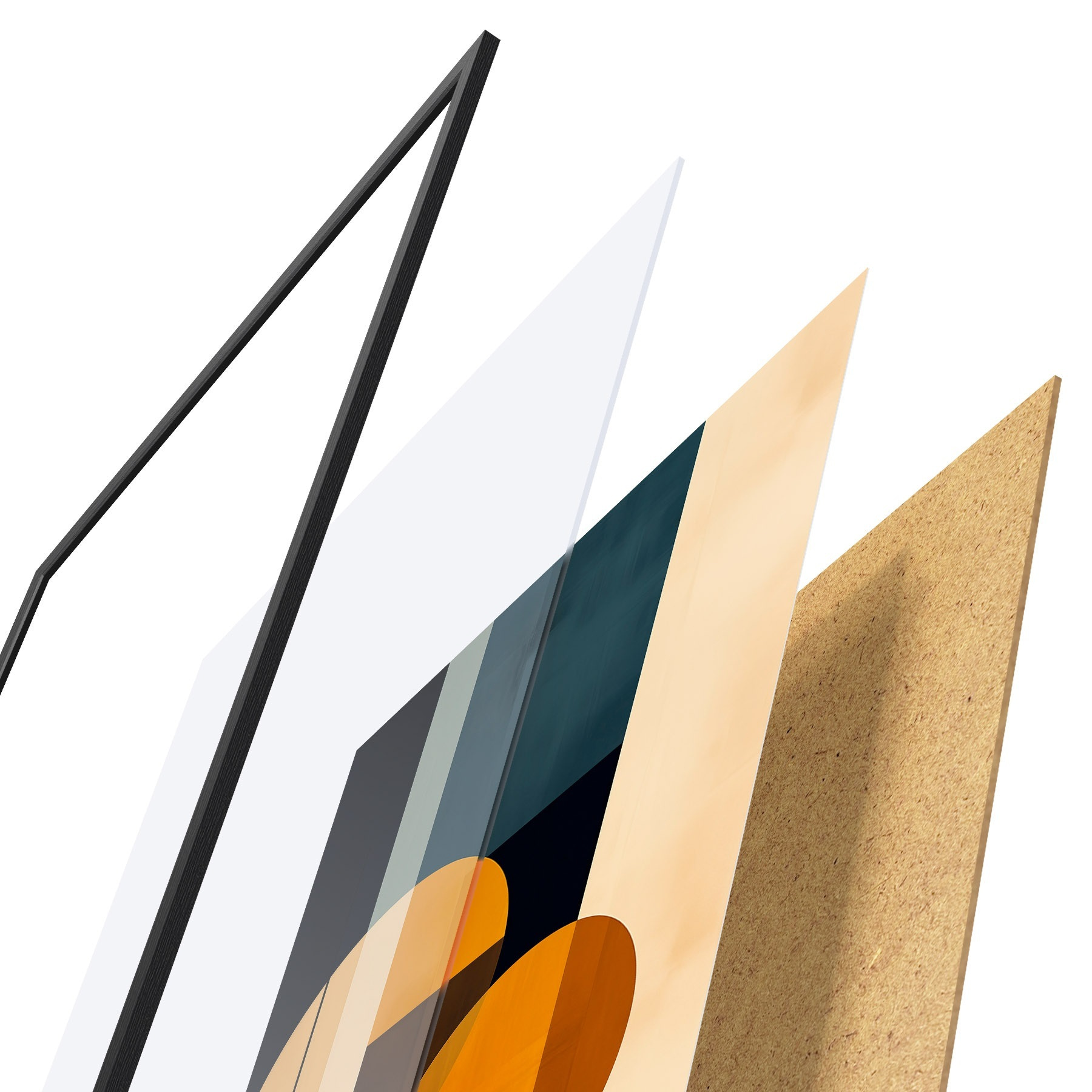 El póster consta de marco, plexiglás, imagen impresa y soporte de aglomerado. El póster puede colgarse inmediatamente en la pared gracias a los soportes de la parte posterior.