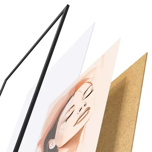 El póster consta de marco, plexiglás, imagen impresa y soporte de aglomerado. El póster puede colgarse inmediatamente en la pared gracias a los soportes de la parte posterior.