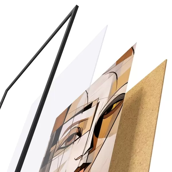 El póster consta de marco, plexiglás, imagen impresa y soporte de aglomerado. El póster puede colgarse inmediatamente en la pared gracias a los soportes de la parte posterior.