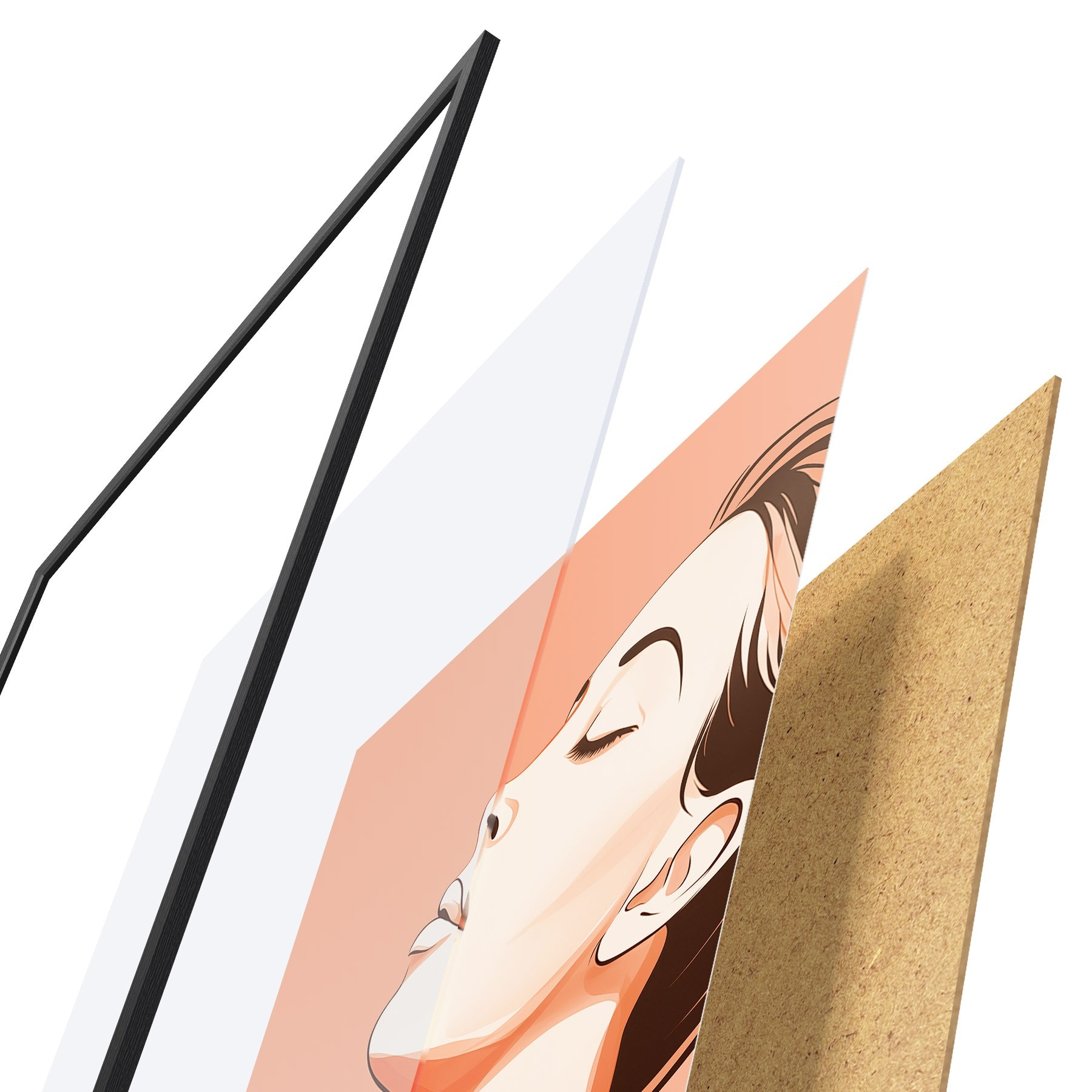 El póster consta de marco, plexiglás, imagen impresa y soporte de aglomerado. El póster puede colgarse inmediatamente en la pared gracias a los soportes de la parte posterior.