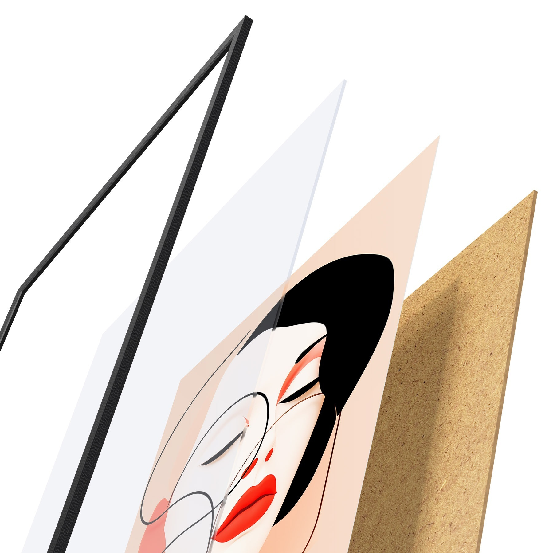 El póster consta de marco, plexiglás, imagen impresa y soporte de aglomerado. El póster puede colgarse inmediatamente en la pared gracias a los soportes de la parte posterior.