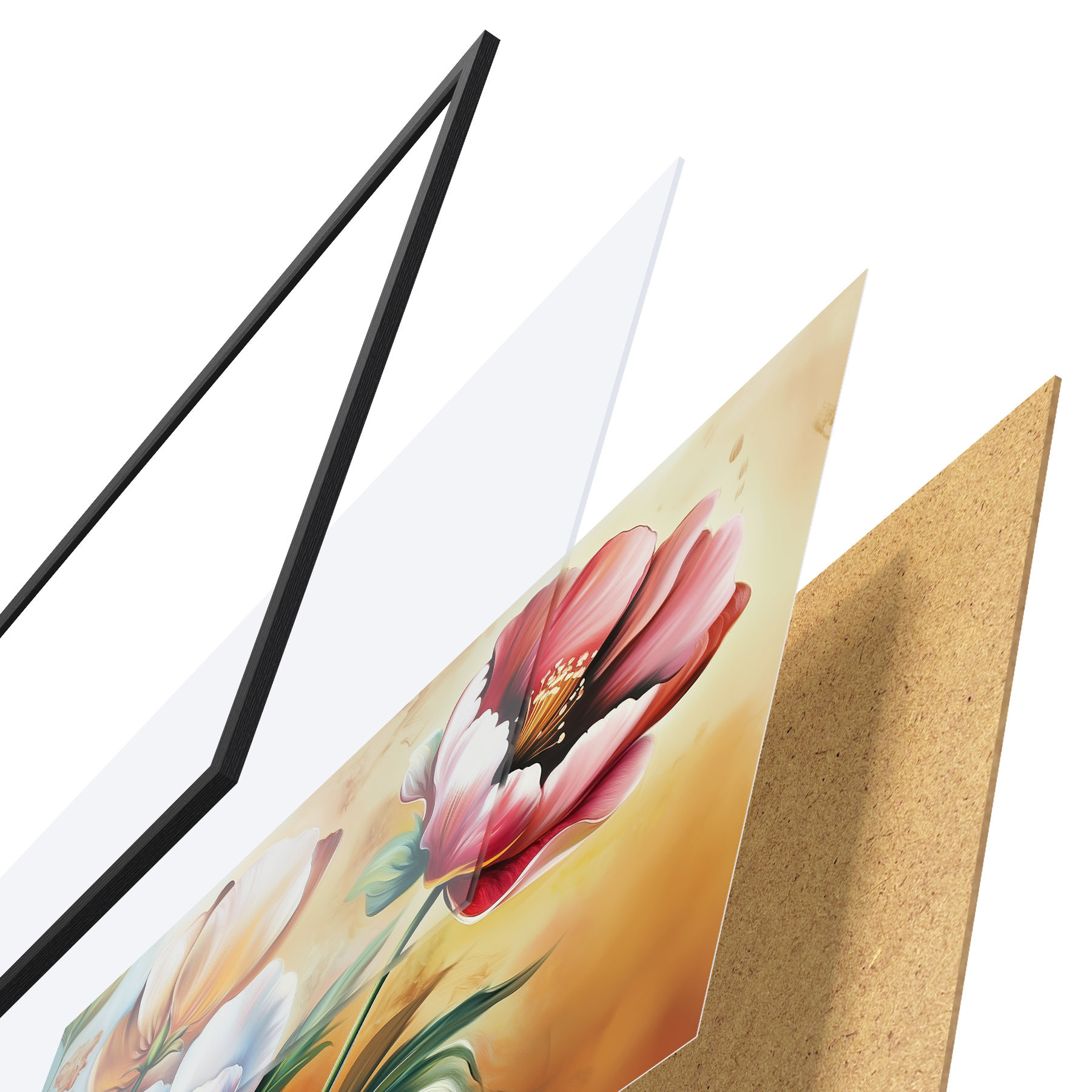 El póster consta de marco, plexiglás, imagen impresa y soporte de aglomerado. El póster puede colgarse inmediatamente en la pared gracias a los soportes de la parte posterior.