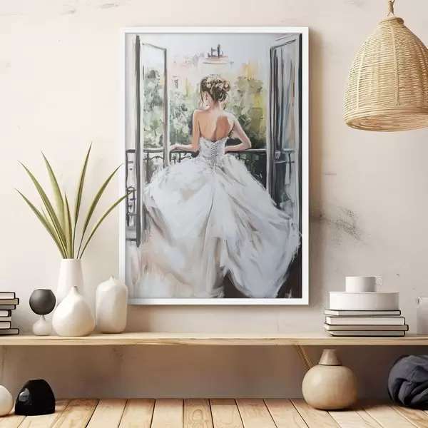 Poster Chica con vestido blanco en el balcón Nr f44226