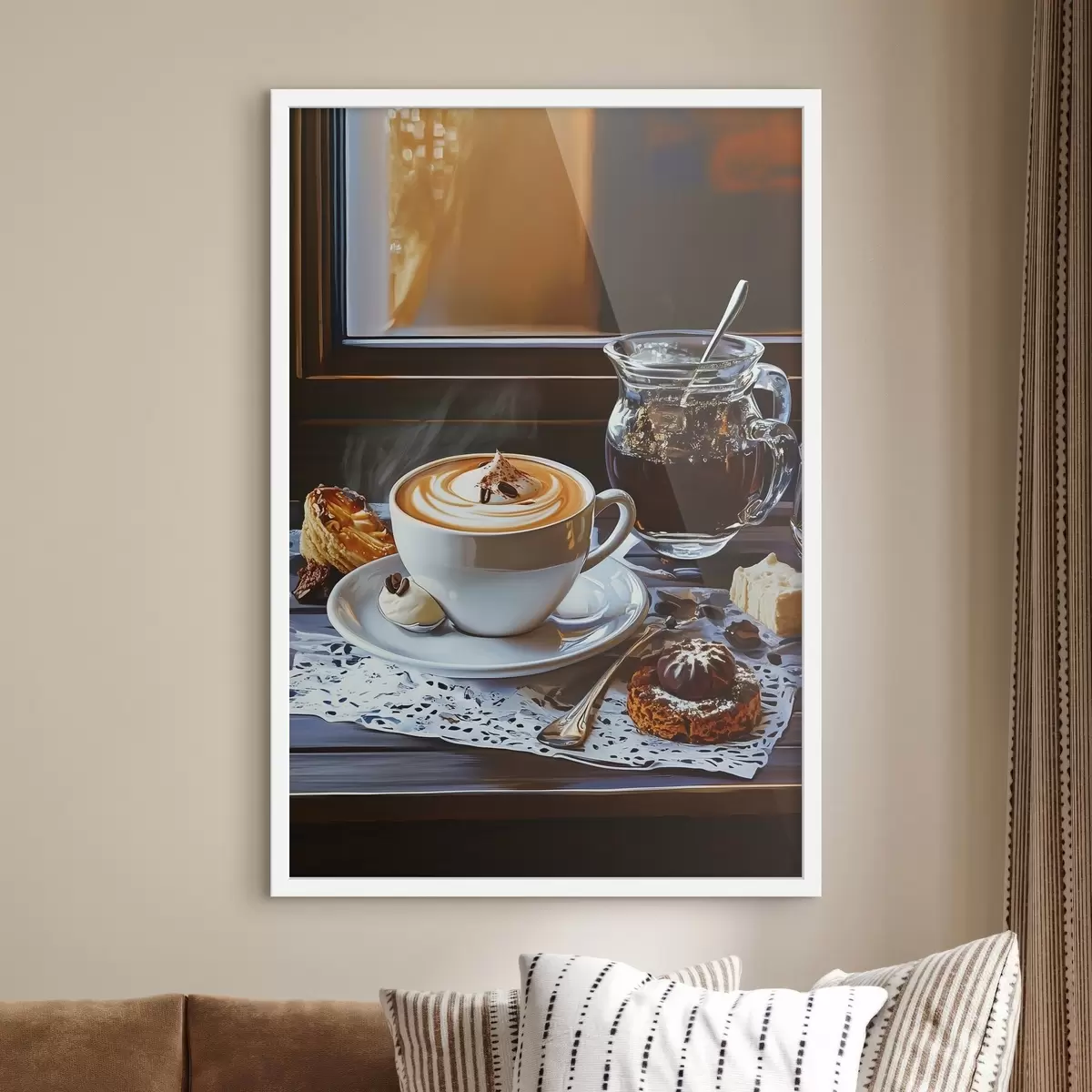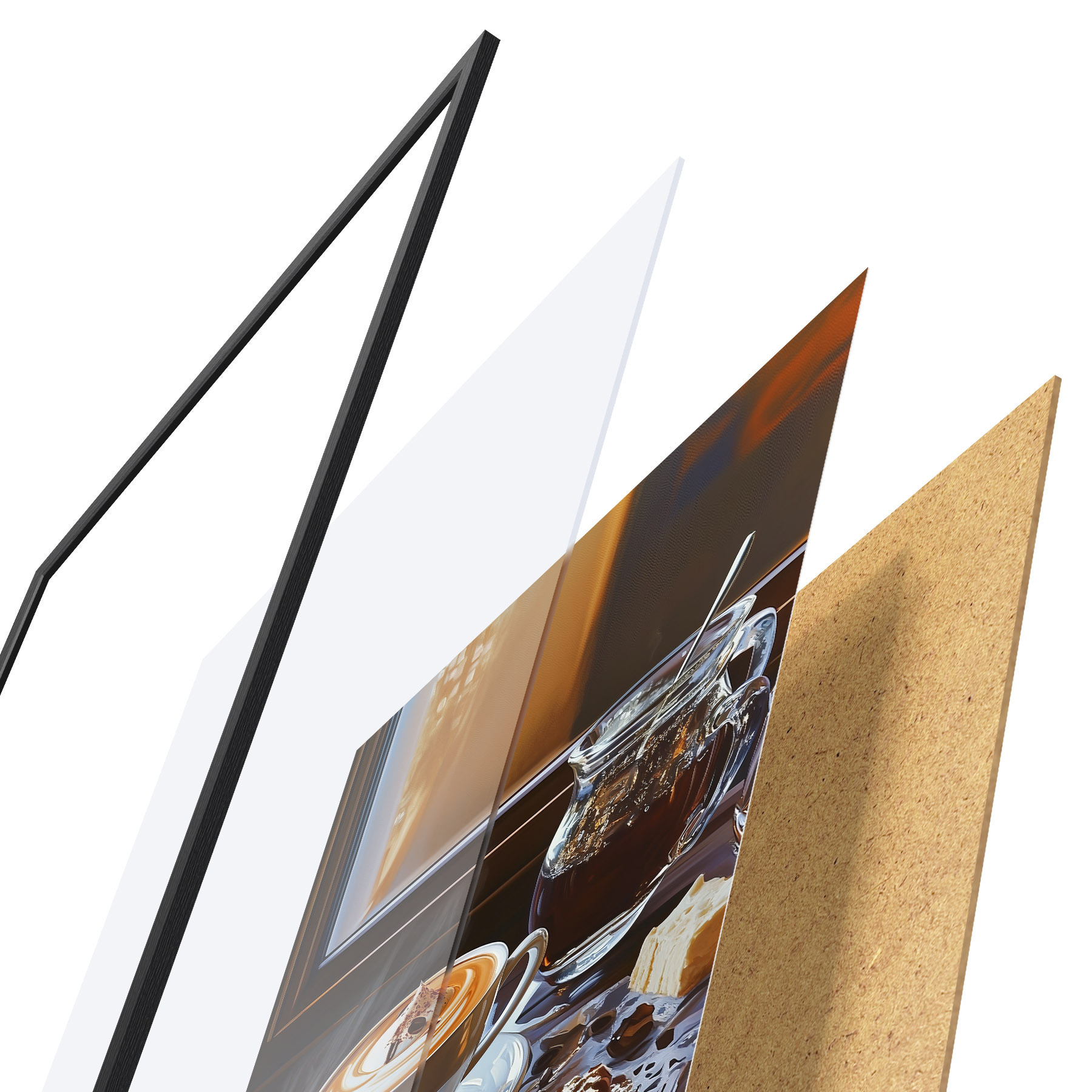El póster consta de marco, plexiglás, imagen impresa y soporte de aglomerado. El póster puede colgarse inmediatamente en la pared gracias a los soportes de la parte posterior.