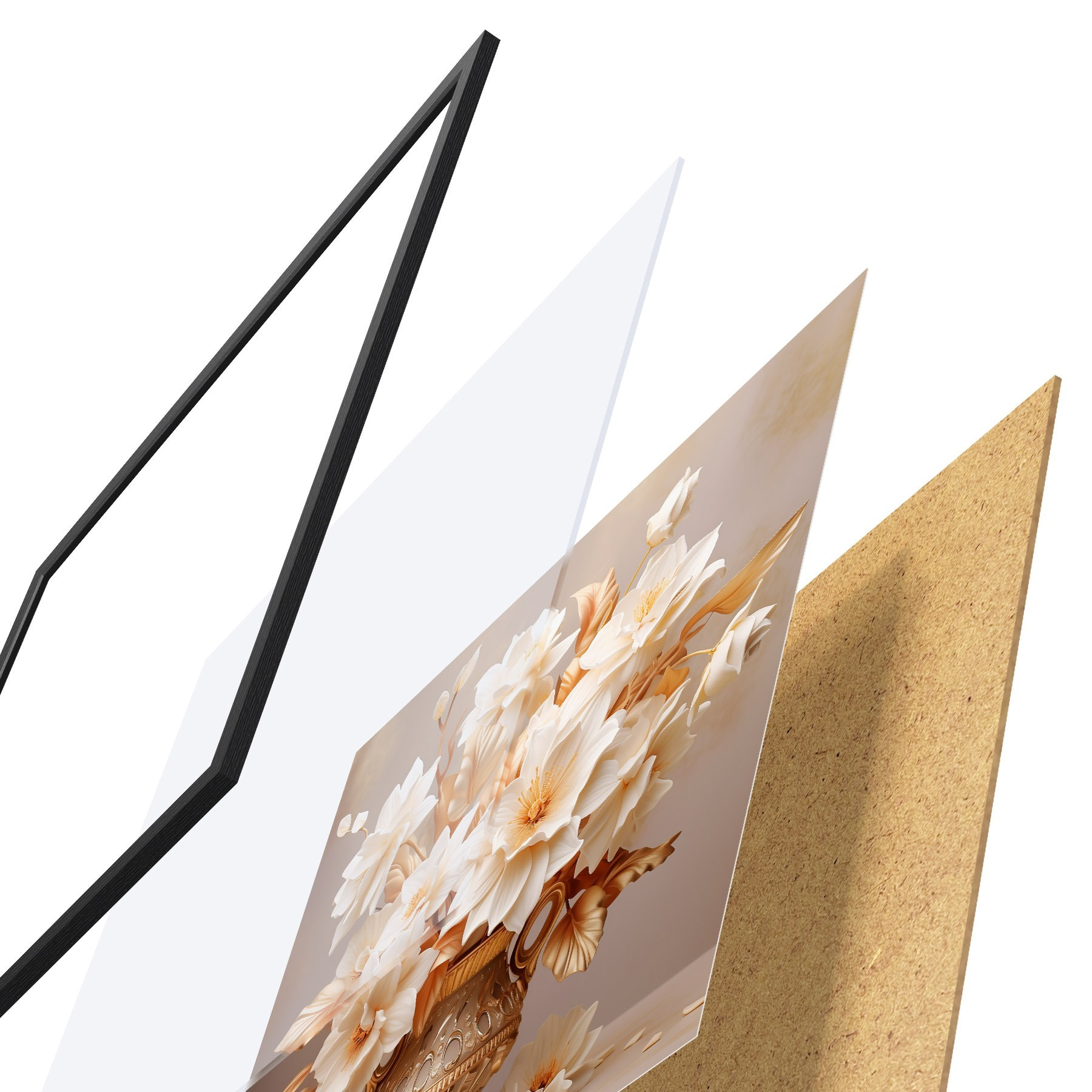 El póster consta de marco, plexiglás, imagen impresa y soporte de aglomerado. El póster puede colgarse inmediatamente en la pared gracias a los soportes de la parte posterior.