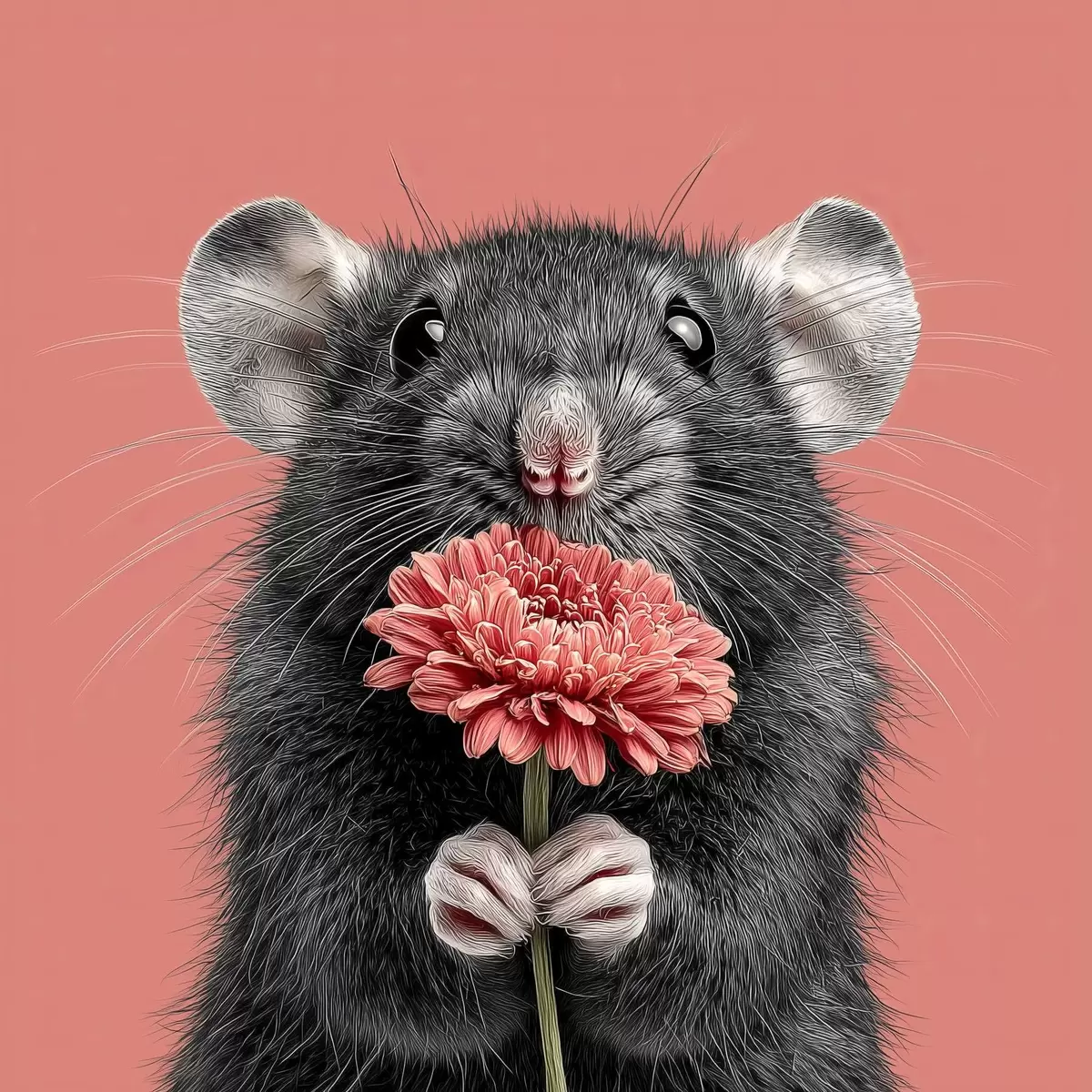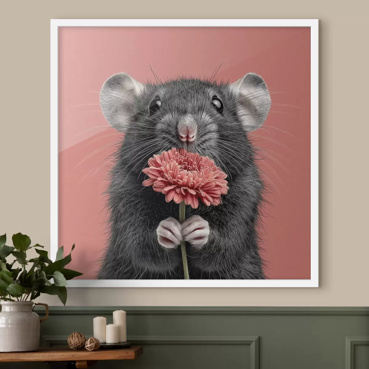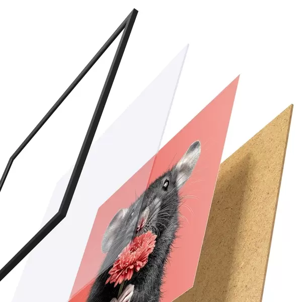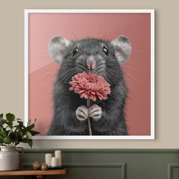 Poster Rata curiosa con una gerbera rosa de estilo minimalista Nr f44241