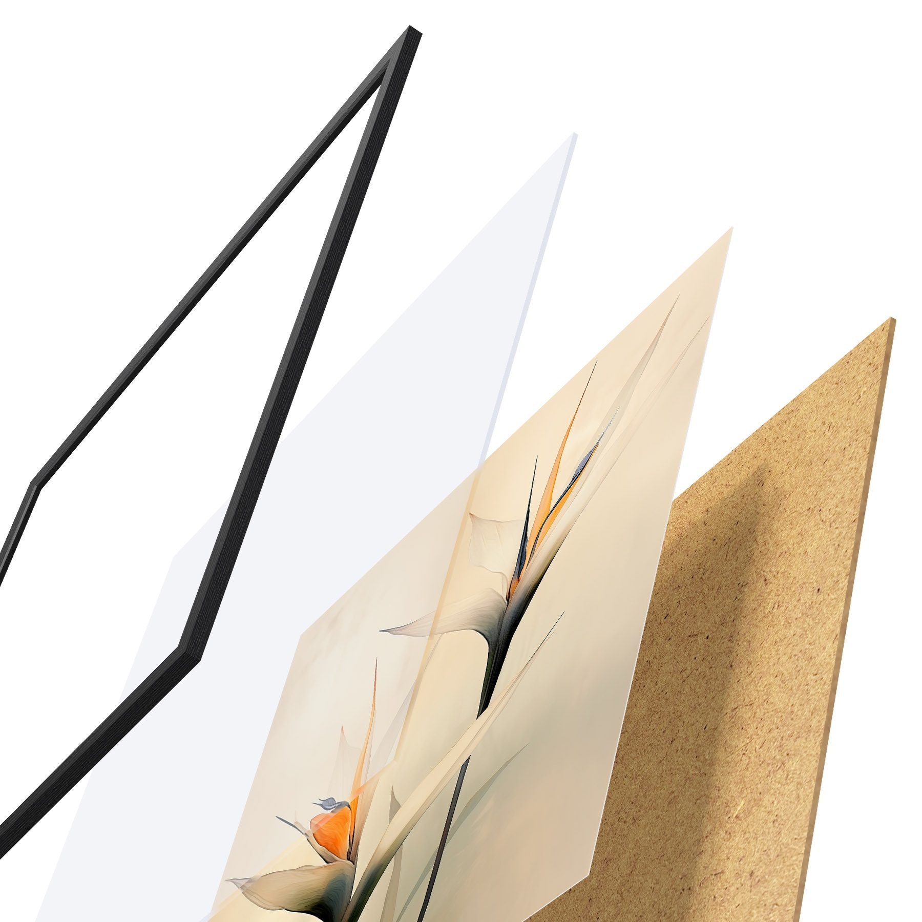 El póster consta de marco, plexiglás, imagen impresa y soporte de aglomerado. El póster puede colgarse inmediatamente en la pared gracias a los soportes de la parte posterior.