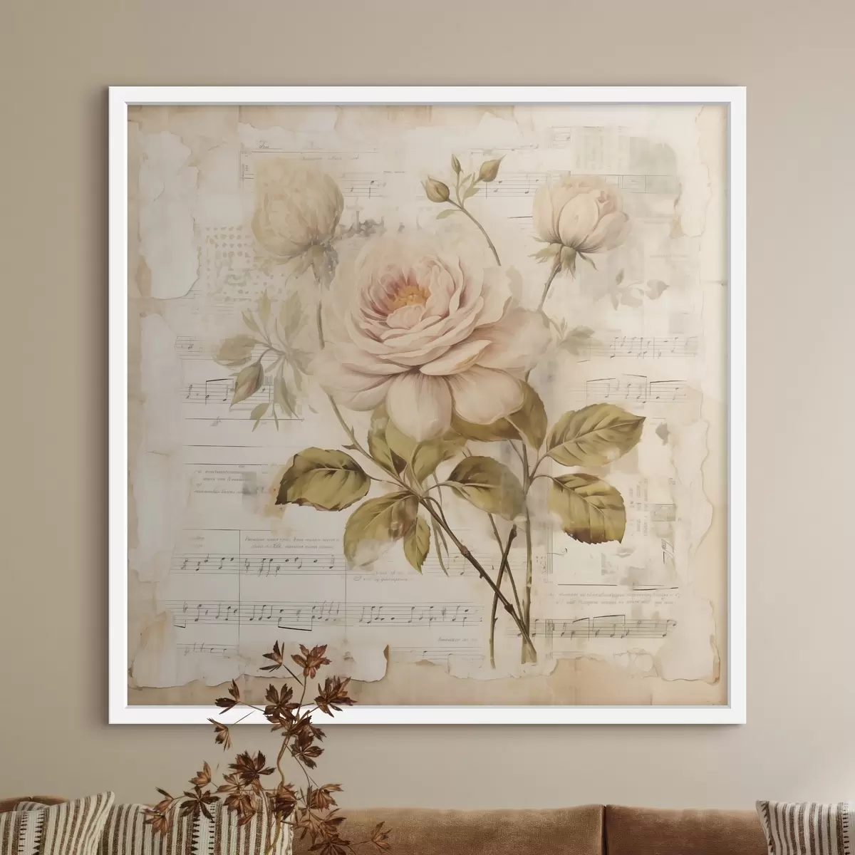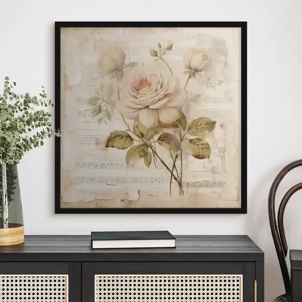 Poster Composición vintage de rosas sobre fondo de billetes antiguos Nr f44247