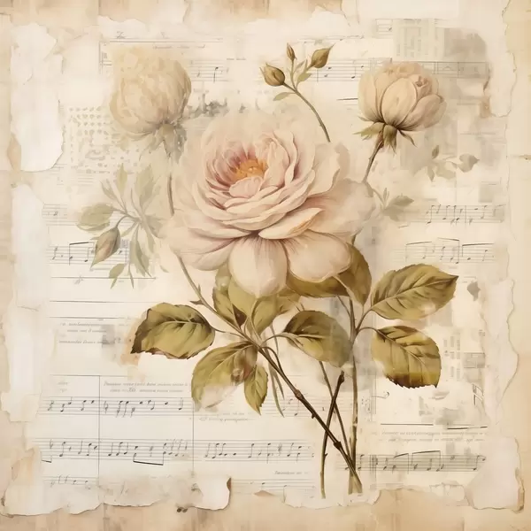 Poster Composición vintage de rosas sobre fondo de billetes antiguos Nr f44247