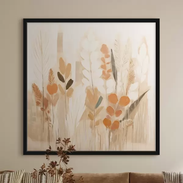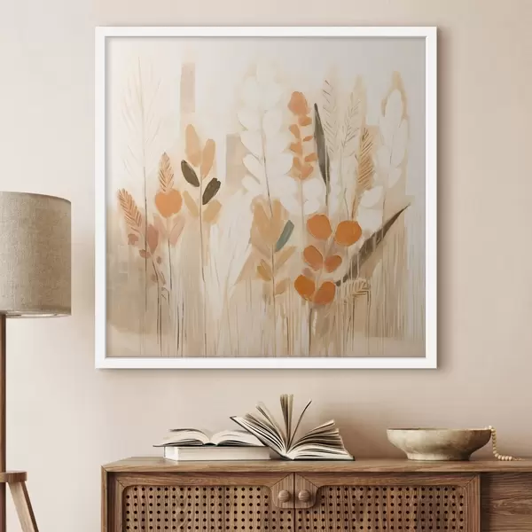 Poster Abstracción cálida con hierbas de campo y flores en una paleta beige-naranja de estilo Art Nouveau Nr f44252