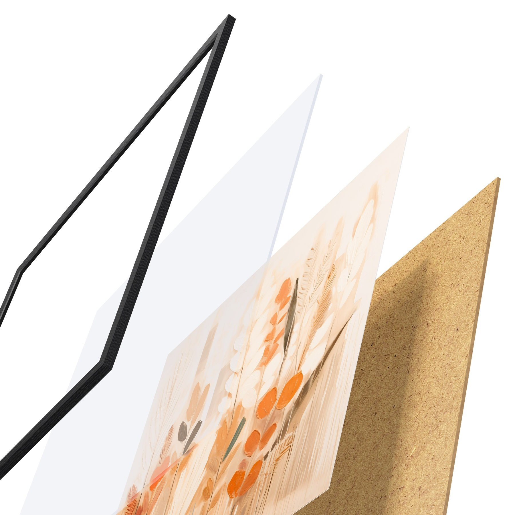 El póster consta de marco, plexiglás, imagen impresa y soporte de aglomerado. El póster puede colgarse inmediatamente en la pared gracias a los soportes de la parte posterior.