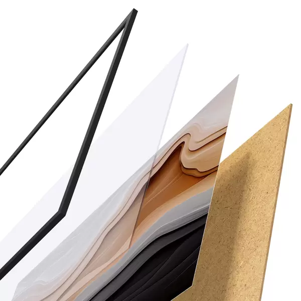 El póster consta de marco, plexiglás, imagen impresa y soporte de aglomerado. El póster puede colgarse inmediatamente en la pared gracias a los soportes de la parte posterior.
