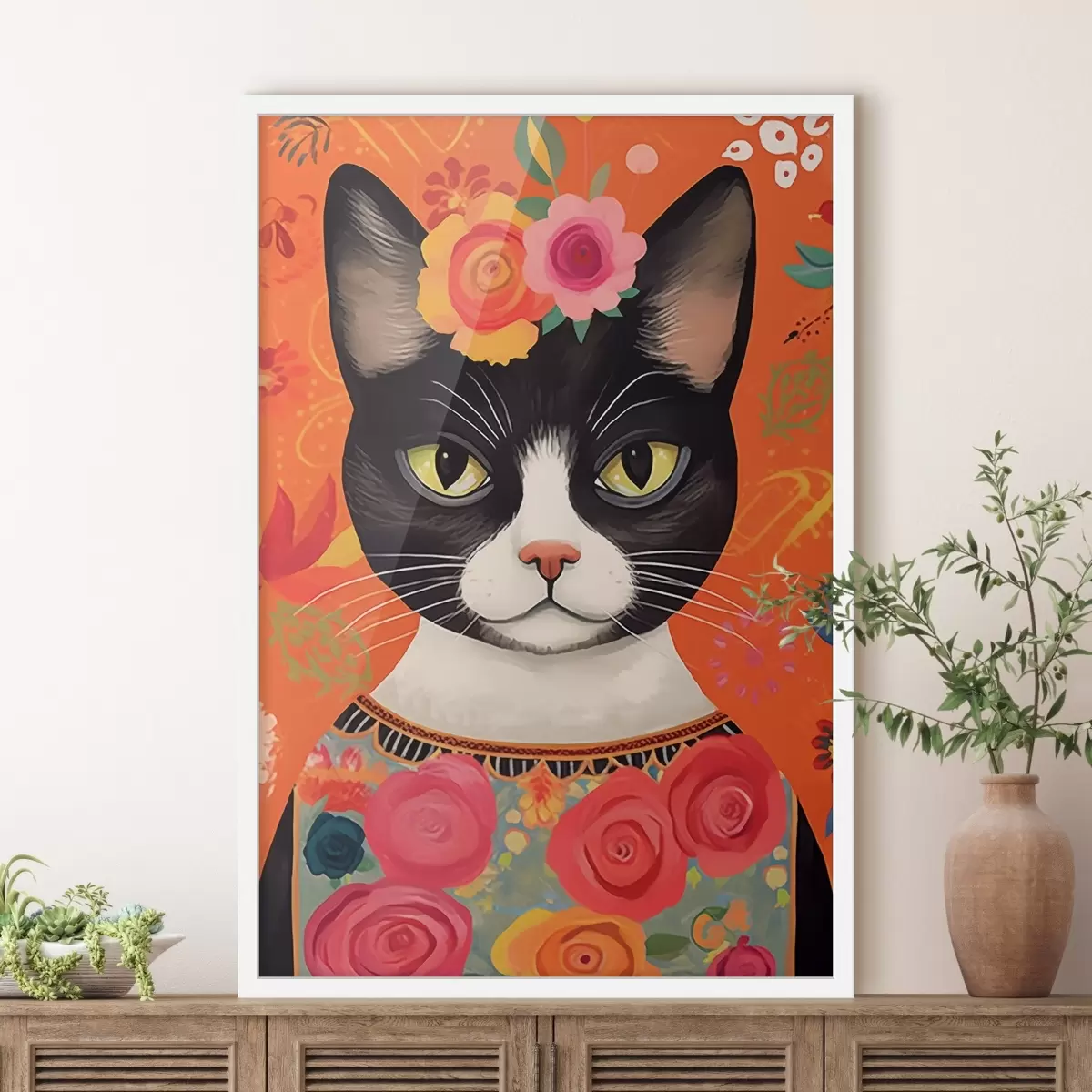 Poster Gato con motivos florales f44262