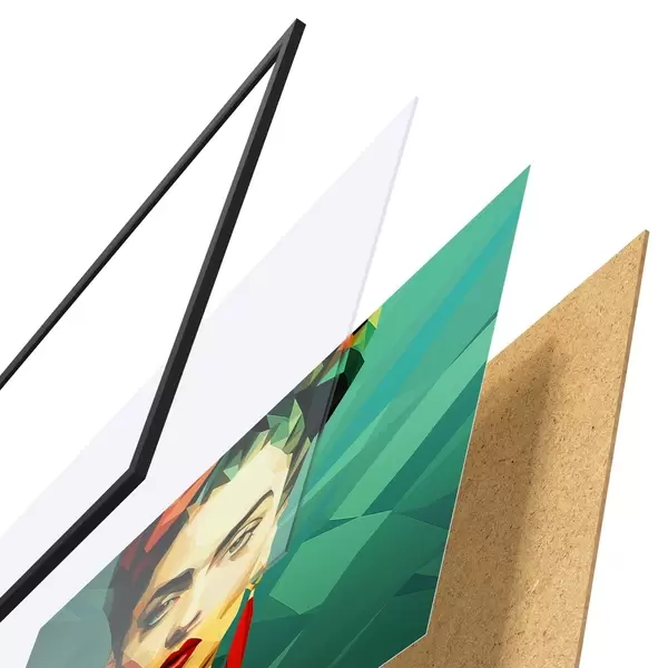 El póster consta de marco, plexiglás, imagen impresa y soporte de aglomerado. El póster puede colgarse inmediatamente en la pared gracias a los soportes de la parte posterior.