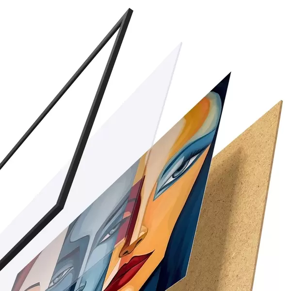 El póster consta de marco, plexiglás, imagen impresa y soporte de aglomerado. El póster puede colgarse inmediatamente en la pared gracias a los soportes de la parte posterior.