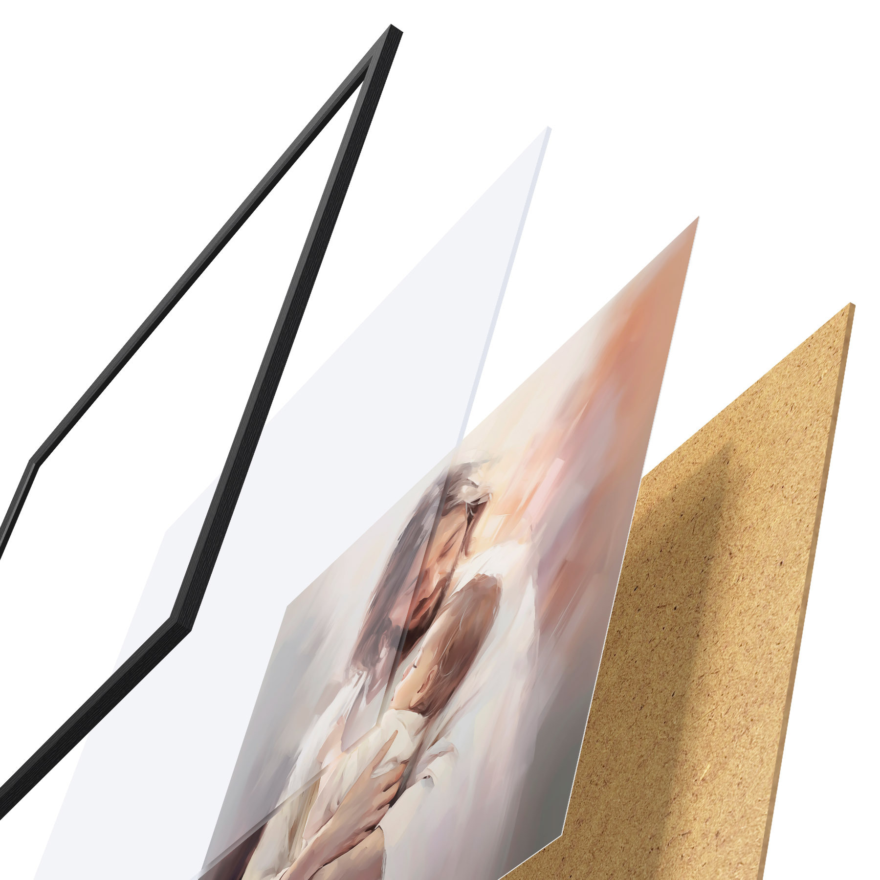El póster consta de marco, plexiglás, imagen impresa y soporte de aglomerado. El póster puede colgarse inmediatamente en la pared gracias a los soportes de la parte posterior.