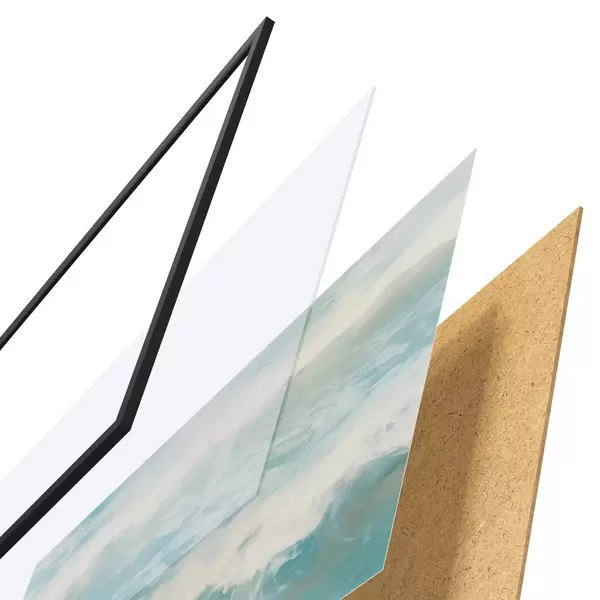 El póster consta de marco, plexiglás, imagen impresa y soporte de aglomerado. El póster puede colgarse inmediatamente en la pared gracias a los soportes de la parte posterior.