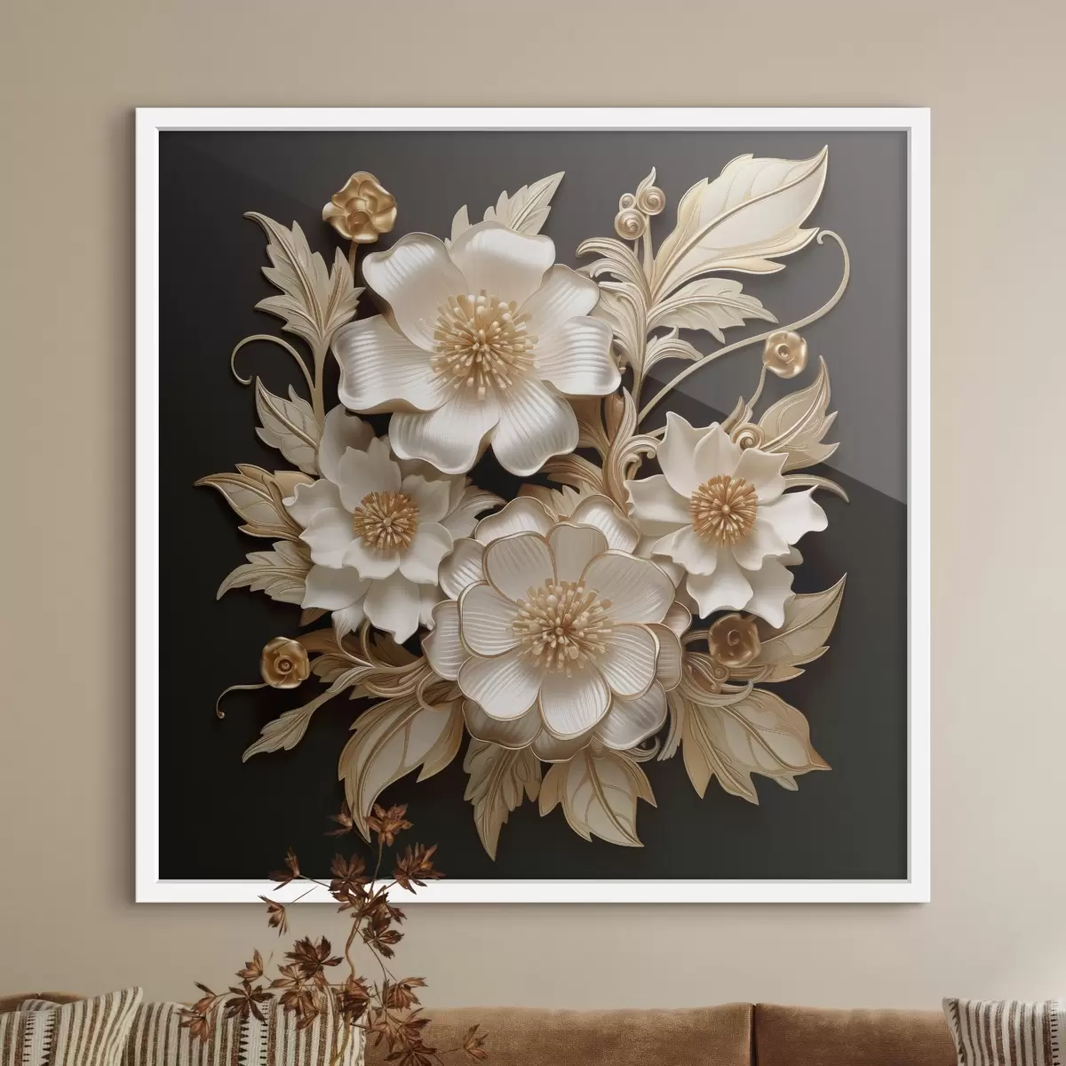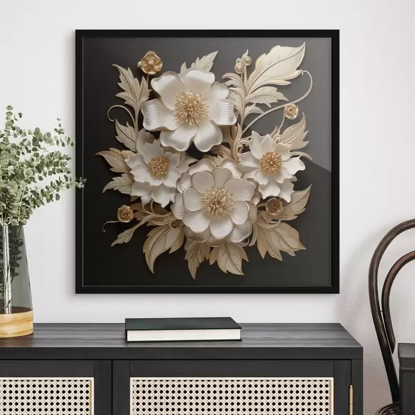 Poster Voluminosas flores blancas sobre fondo negro f44340