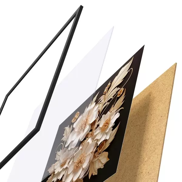 El póster consta de marco, plexiglás, imagen impresa y soporte de aglomerado. El póster puede colgarse inmediatamente en la pared gracias a los soportes de la parte posterior.