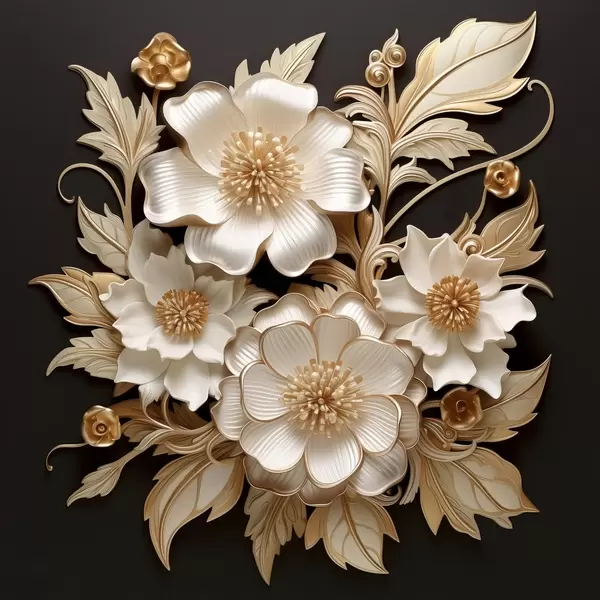 Poster Voluminosas flores blancas sobre fondo negro Nr f44340
