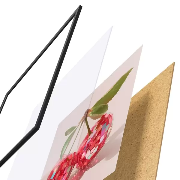 El póster consta de marco, plexiglás, imagen impresa y soporte de aglomerado. El póster puede colgarse inmediatamente en la pared gracias a los soportes de la parte posterior.